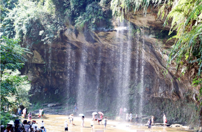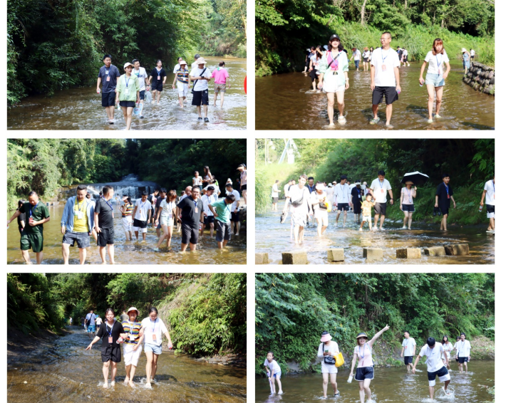 團隊成員一行從觀沱下渡下船后,經過1公里山間林蔭小道,開啟長略7公里的“中國最長石板河”踩水體驗:大家欣然下水后發現,石板河一石沉底,托起淺淺清流,或急速、或緩流、徐徐下行、人水合一、動態接觸,讓人全新體驗感十足;兩岸奇峰夾峙、林木森森,成就天下石板河之絕唱。大家先后經過一碗水、一顆松、碧水長灘、響灘子瀑布、出谷食坊、水簾飛虹、水舞山間、戲水戰場等景點,在溯溪戲水的樂園、避暑游樂的天堂中,讓人縱情山水,盡享水趣。然后,乘坐體驗飛天魔毯穿越叢山峻嶺之間,遙望七彩玻璃水滑道的蜿蜒飛馳,感受大自然鬼斧神工和天下穹隆的瑰麗之美。